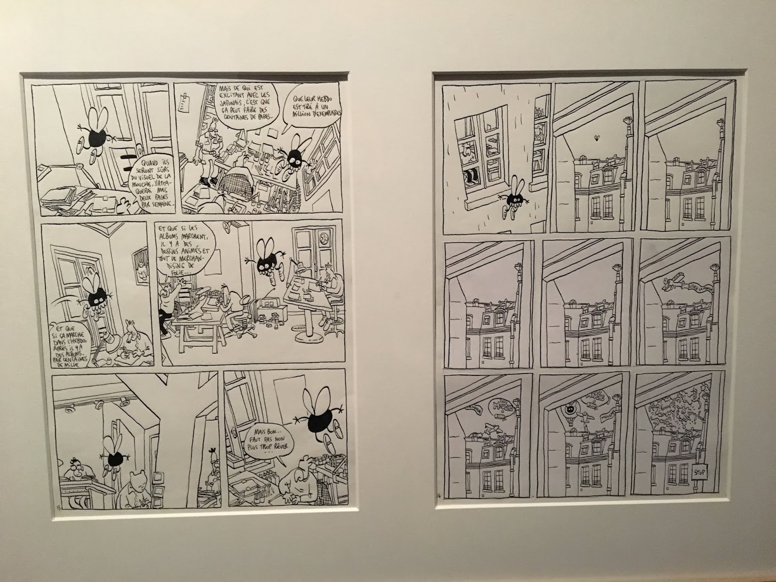 The second part of the exhibition features original pages and drafts in pencil and aquarelle taken from de Crécy's recent bande dessinée album