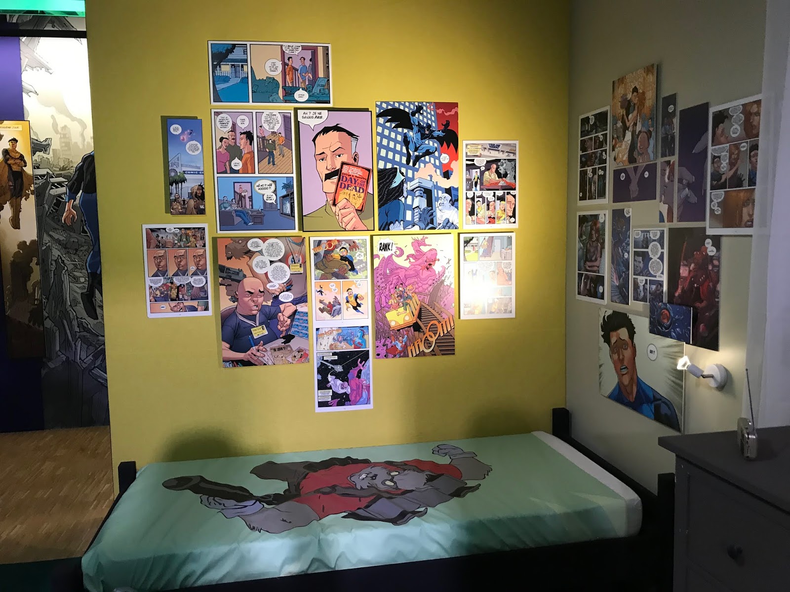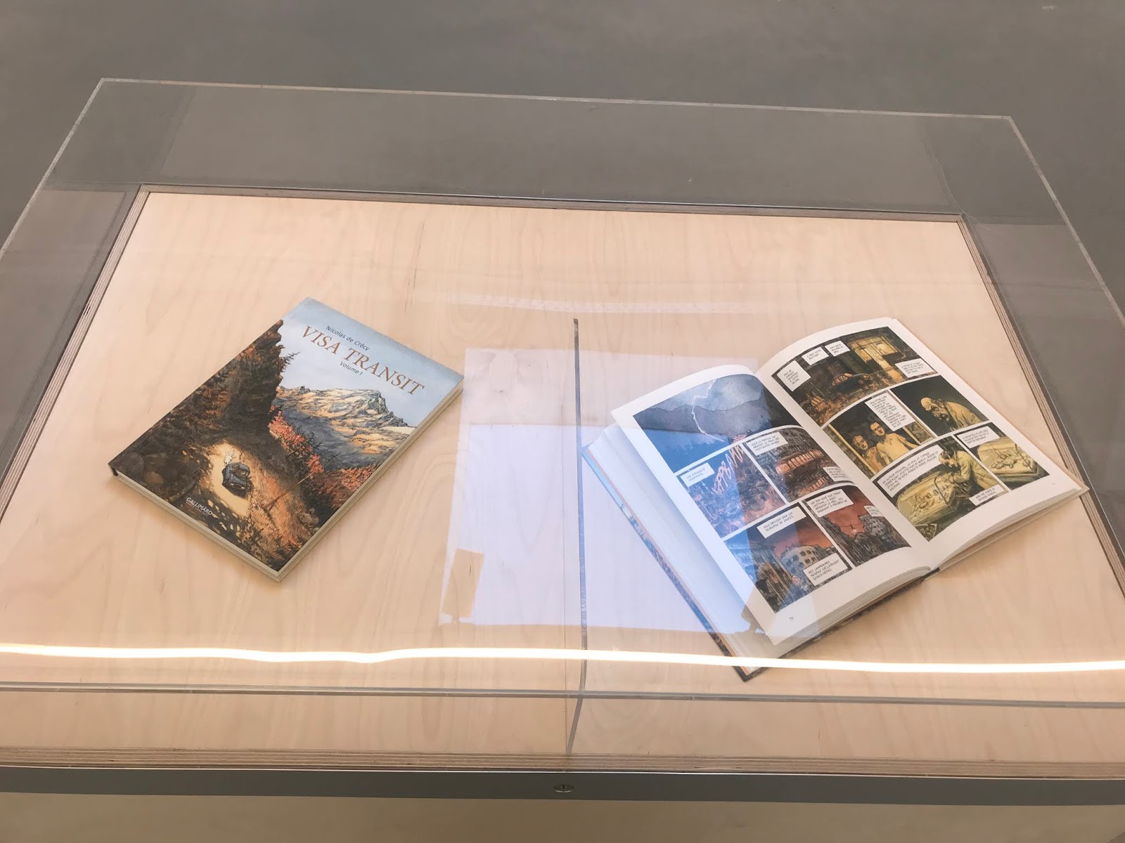 Visa Transit, published by Futuropolis. The work on display, presented in the back room of the gallery, offers a glimpse into de Crécy's creative comics process as he lays out the story of a road trip based on his memories of a pre-Fall of the Wall Europe.